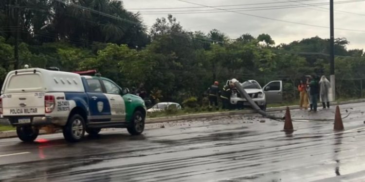MANAUS – Um casal ficou ferido com gravidade na manhã desta segunda-feira (6), depois que o carro em que iam para o trabalho perder o controle, derrubar um poste e levar dois bueiros na avenida Santos Dumont, na estrada do aeroporto, no Tarumã, na zona oeste de Manaus.
