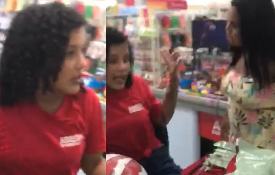 BRASIL – Vídeos caíram nas redes sociais neste fim de semana e mostram uma esposa traída invadindo um supermercado para bater numa caixa da loja, caso bem parecido com o que fez Ismaely Siqueira, na famosa saga “Talarica da Bemol”.