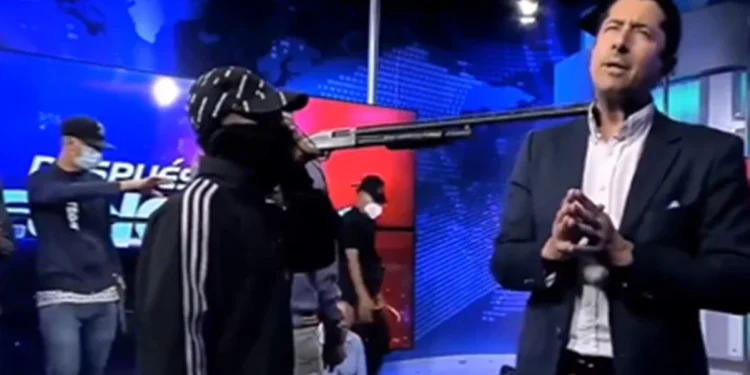 A situação ocorreu em um estúdio do canal de televisão da TC Televisión. As situações ocorrem após o criminoso mais procurado do Equador desapareceu da prisão onde cumpria pena. Adolfo Macías, conhecido como “Fito” e líder da gangue Los Choneros, uma das mais poderosas do país, desapareceu no domingo (7).