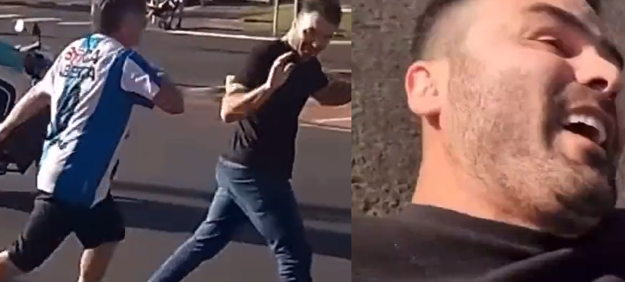 Ele dá tapas e socos no ex-deputado que chegou a ir para a Ucrânia e acabou tendo mandato cassado ao ter áudio vazado sendo machista e ofendendo mulheres ucranianas. Um outro homem que acompanhava o ex-deputado também foi agredido e caiu no chão.