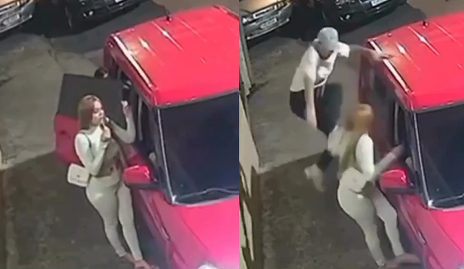 Nas gravações, o agressor é visto saltando de um veículo, avançando em direção à vítima – que se encontrava próximo ao próprio carro – e desferindo primeiro uma voadora e depois uma sequência de chutes. O ataque brutal aconteceu na via pública, em frente a um automóvel estacionado.