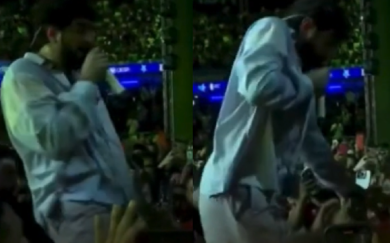 PARINTINS (AM) – O cantor Nattan foi o centro de um momento inusitado durante a Festa dos Visitantes em Parintins nesta quinta-feira (26). Enquanto animava a galera com o hit “Eu Vou Sentar“, o artista foi surpreendido por um fã “ousado“ no meio do público que decidiu testar o limite da interação artista-fã com uma “mão boba“ direcionada às suas partes íntimas!
