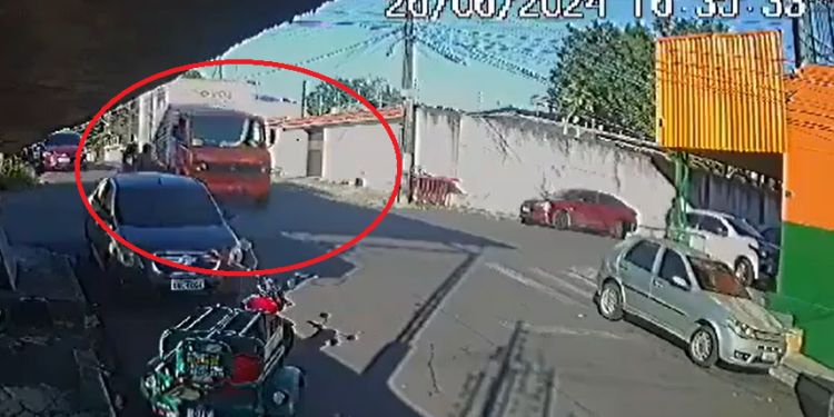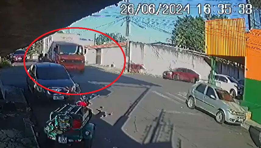 MANAUS (AM) – Uma câmera de segurança filmou o momento em que um caminhão que seria da empresa Ovos de São Pedro colide com uma motocicleta. O acidente ocorreu na rua Almeron Caminha, no bairro Petrópolis, Zona Sul de Manaus.