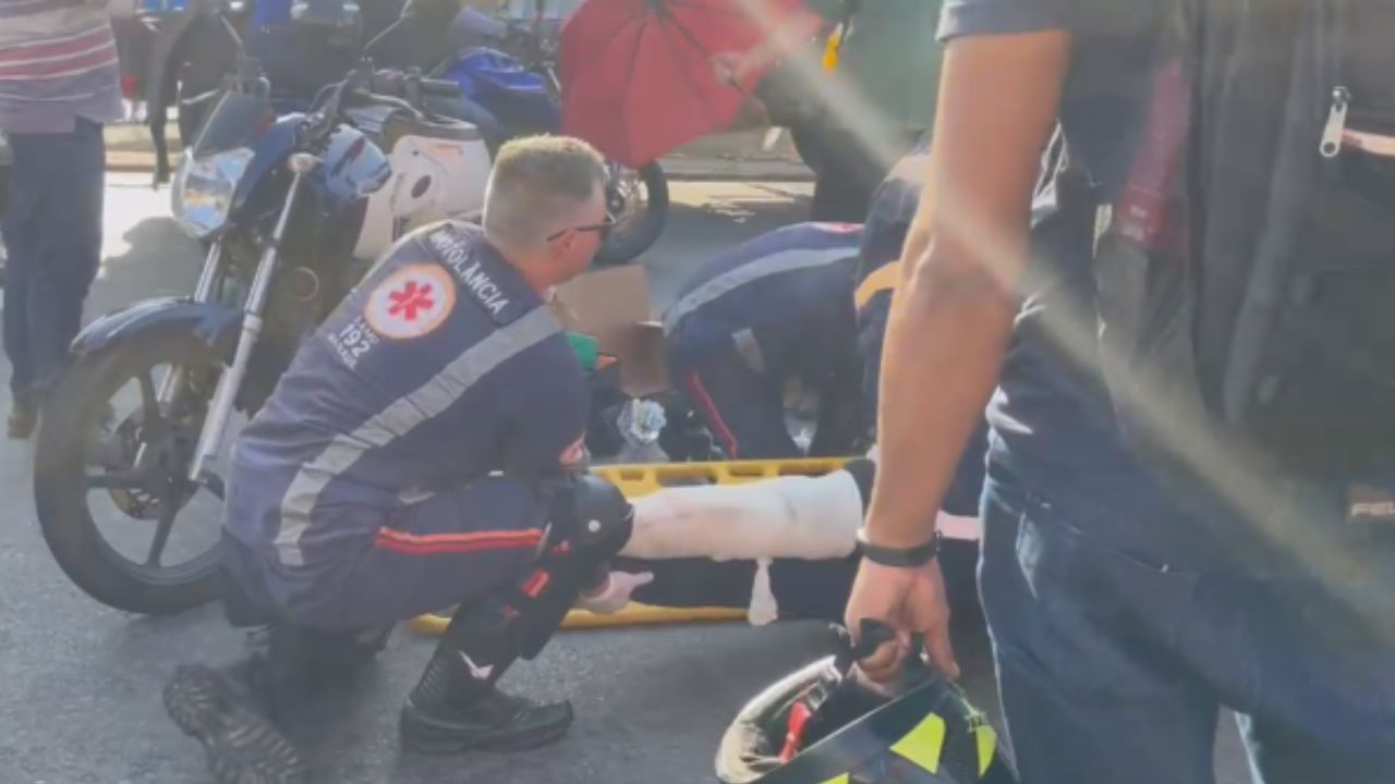 O condutor da moto estava com uma passageira na garupa e avançou o sinal vermelho. A filha da idosa conseguiu por pouco se salvar, mas teve que ver a mãe sendo arremessada na avenida.