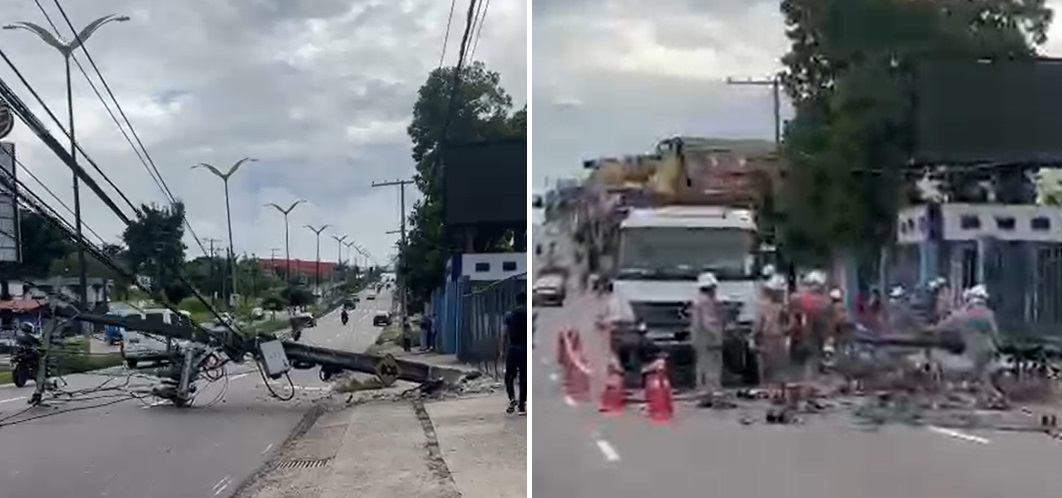 MANAUS – Um carro derrubou um poste na manhã desta quinta-feira (2), na avenida Max Teixeira, na Cidade Nova, zona norte, e o motorista do veículo teria dirigido o carro sem autorização do proprietário.