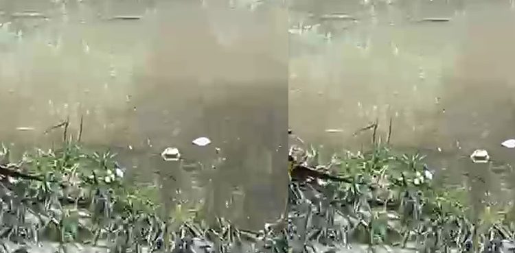 A imagem horripilante foi gravada e compartilhada nas redes sociais. O igarapé com o corpo do sexo masculino entrou para os assuntos mais comentados em grupo de polícia.