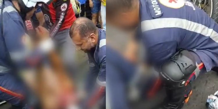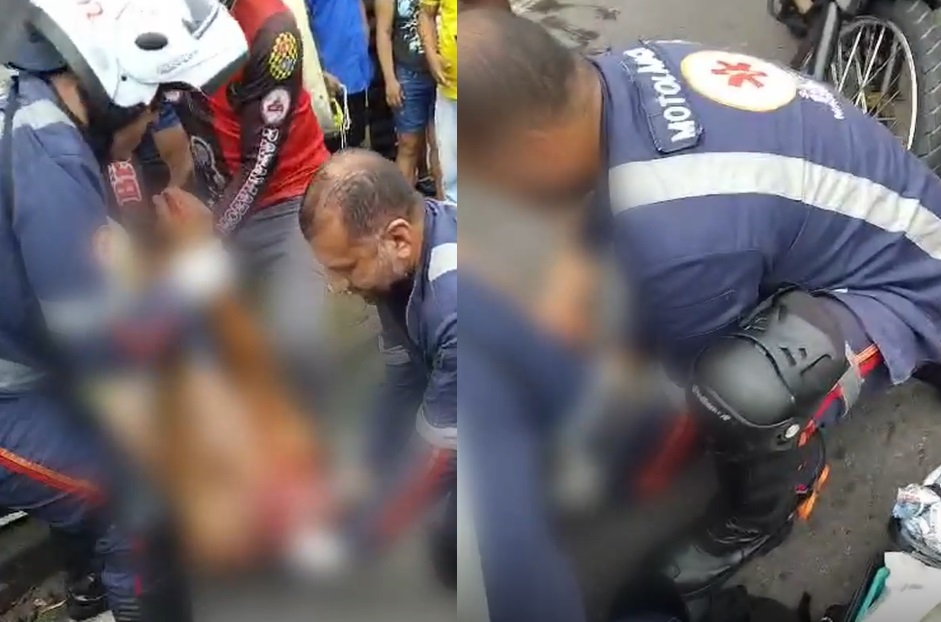 Entre os machucados, uma fratura exposta no condutor mostra a gravidade do choque. O Serviço de Atendimento Móvel de Urgência (Samu) chegou rapidamente ao local, mas o estado do rapaz parece grave. Ele foi acolhido e depois encaminhado ao Hospital 28 de Agosto.