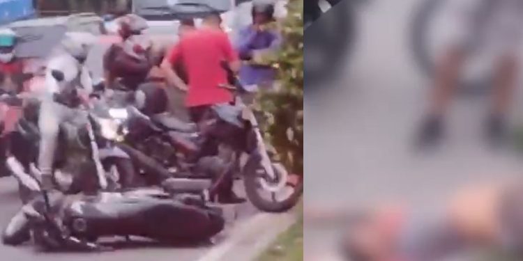 MANAUS – Um grave acidente deixou um motoqueiro retorcido no chão, nesta quinta-feira (19), na avenida Silves, no bairro Cachoeirinha, na zona sul de Manaus. Nas imagens o homem chega a dizer. “Morreu na hora”.