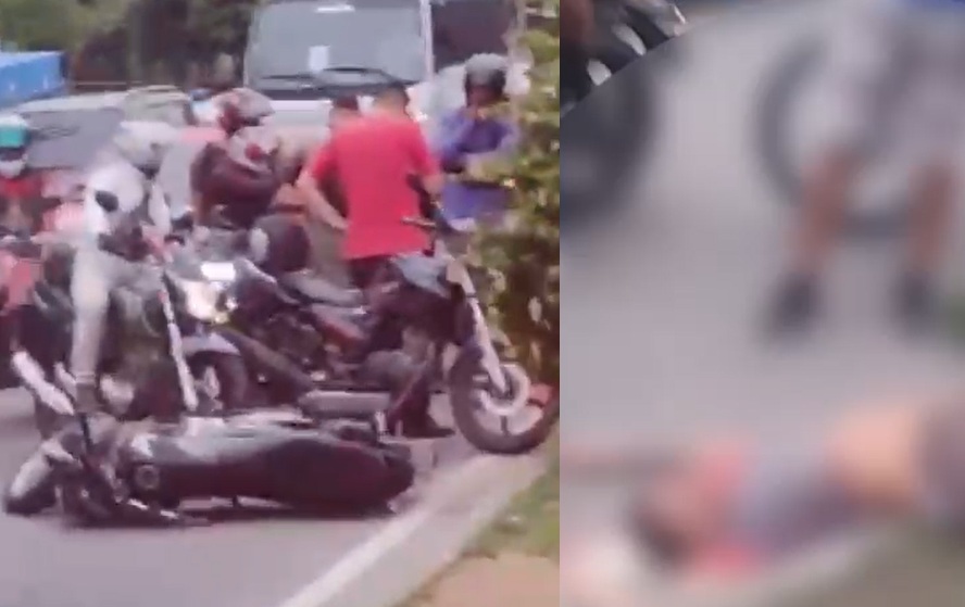 MANAUS – Um grave acidente deixou um motoqueiro retorcido no chão, nesta quinta-feira (19), na avenida Silves, no bairro Cachoeirinha, na zona sul de Manaus. Nas imagens o homem chega a dizer. “Morreu na hora”.