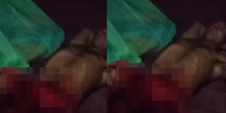 Um vídeo do homem ainda não identificado deitado no próprio sangue comprova a gravidade do ferimento. Policiais foram ao local mas o suspeito fugiu pela mata.