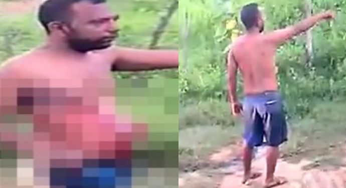 MANAUS – Um homem não identificado viralizou neste fim de semana, após andar calmamente com as tripas para fora, depois de ser esfaquedo.