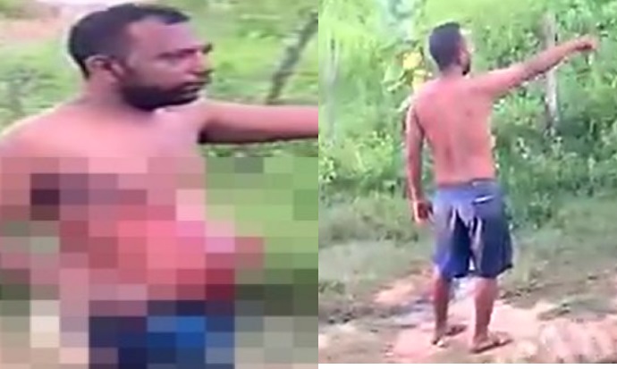 MANAUS – Um homem não identificado viralizou neste fim de semana, após andar calmamente com as tripas para fora, depois de ser esfaquedo.