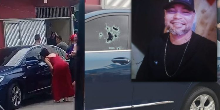 O homem foi morto dentro do carro, na rua B, lpor um pistoleiro ainda não identificado, que fugiu após os tiros. O carro e o homem apresentam muitas perfurações de bala.