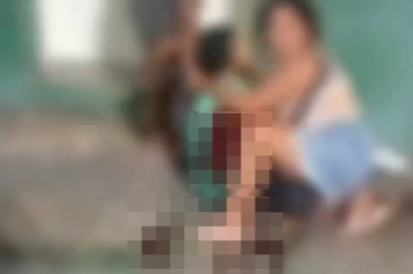 Porém, outra pessoa diz ao fundo. “A culpada foi tu”, sem dar detalhes do que teria motivado o ataque, nem quem seria o responsável.