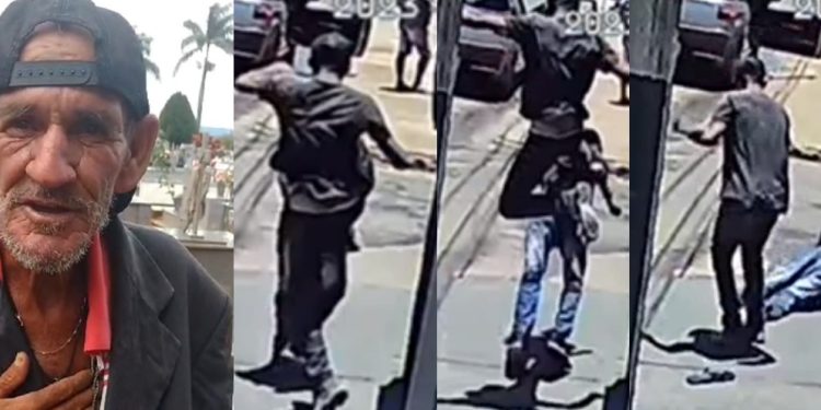 BRASIL – Um vídeo revoltante viralizou neste fim de semana, mostrando o assassinato do idoso Valdir Prates Braga, de 62 anos, morto com uma voadeira por homem de 26 anos com passagem por tráfico e roubo. A vítima foi morta com uma voadora pelas costas, após oferecer uma banana na rua para a namorada do assassino.