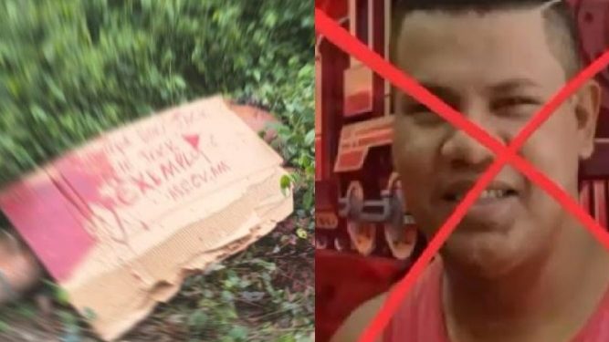 MANAUS – Torturado, picotado, esfaqueado e morto pelo Tribunal do Comando Vermelho, neste sábado (7), Jhon Glaucio Pimentel Marques, de 32 anos, vulgo “Jhon Feio” foi assassinado e teve o corpo deixado na mata com um bilhete na estrada do Puraquequara, na zona Leste de Manaus.