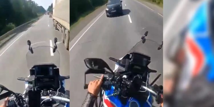 MANAUS – Um motoqueiro compartilhou nas redes sociais o momento em que fez uma ultrapassagem irregular na estrada, foi atingido por outro veículo e perdeu o pé. As cenas são fortes.