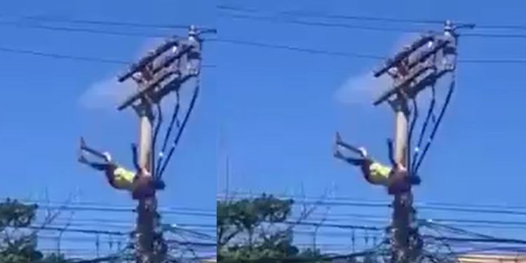 BRASIL – Um homem não identificado subiu no poste para furtar fios nesta terça-feira (2) e acabou recebendo uma descarga elétrica fulminante. O caso ocorreu na avenida Pinto de Aguiar, em Salvador.