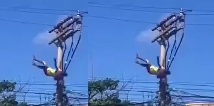 Um motorista parou o carro e filmou a cena, que está viralizando nas redes sociais. Depois de despencar do poste na calçada alguém chamou o Samu, que levou o homem com queimaduras graves para uma unidade hospitalar da cidade.