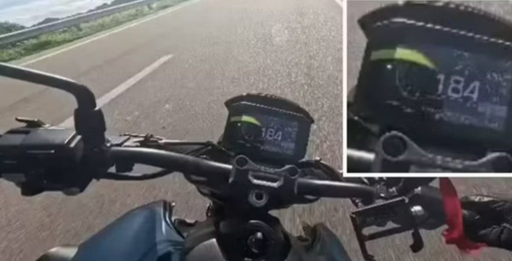 As imagens mostram o homem de 35 anos ainda não identificado a mais de 180 KM/h perdendo o controle na curva e batendo na grade de proteção da estrada.
