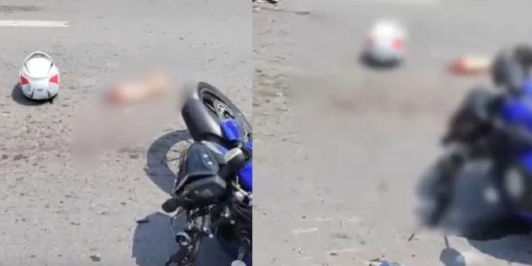 As imagens da perna da mulher no asfalto correm as redes socias neste sábado. O motorista da carreta afirma que a moto fez uma conversão irregular.