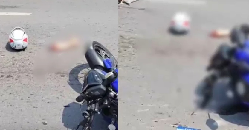 As imagens da perna da mulher no asfalto correm as redes socias neste sábado. O motorista da carreta afirma que a moto fez uma conversão irregular.