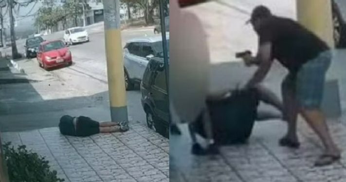 Uma câmera mostra o momento em que Antonio Cavalcante Monteiro Júnior, de 42 anos, estava junto com a esposa deixando os dois filhos na escola e reagiu aio ataque. As crianças e a mulher não ficaram feridas.