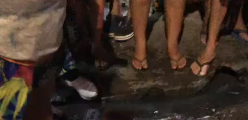 Ela pede ajuda sob o olhar dos curiosos, que nada fazem, diante da cenas. O caso ocorreu na avenida Nossa Senhora de Fátima, bairro Cidade de Deus, zona norte.