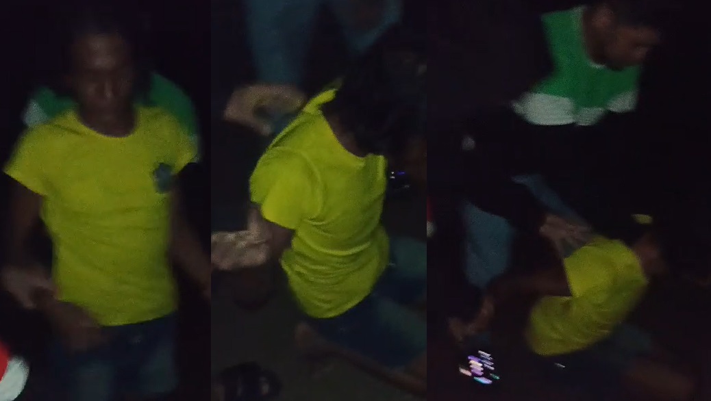 O suspeito de roubo foi seguro, deitado no chão e espancado até desacordar. “E se tu denunciar nós, vamos te matar aonde tu tiver, tá ligado, e quem tava contigo vai também vai rodar”.