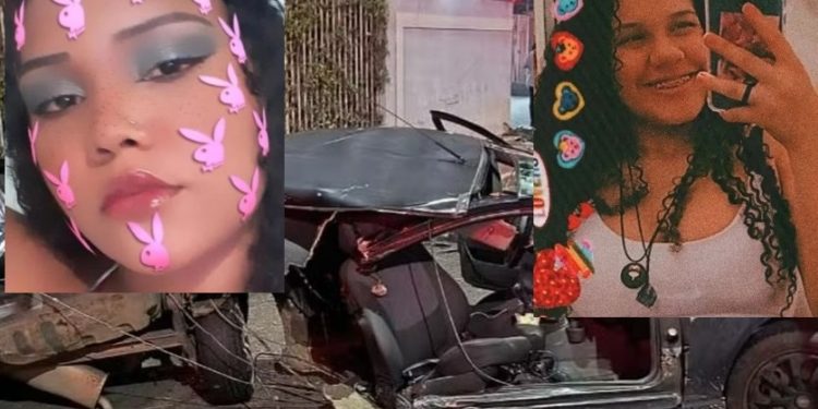 BRASIL – Carro retorcido e duas jovens mortas no chão. Foi esse o resultado da batida forte de um Ford Ka no muro, em Limoeiro, Espírito Santo. no domingo (7).