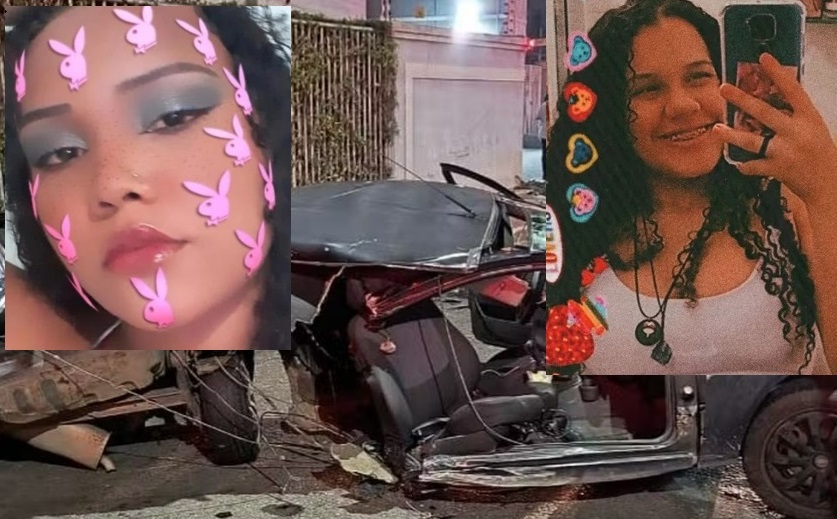 BRASIL – Carro retorcido e duas jovens mortas no chão. Foi esse o resultado da batida forte de um Ford Ka no muro, em Limoeiro, Espírito Santo. no domingo (7).