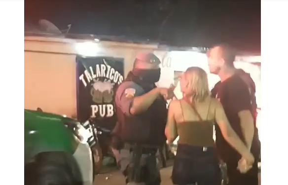 Assim que os policiais chegaram, os clientes teriam ficado revoltados e uma pessoa, ao fundo do vídeo, diz que spray de pimenta foi jogado nos frequentadores.