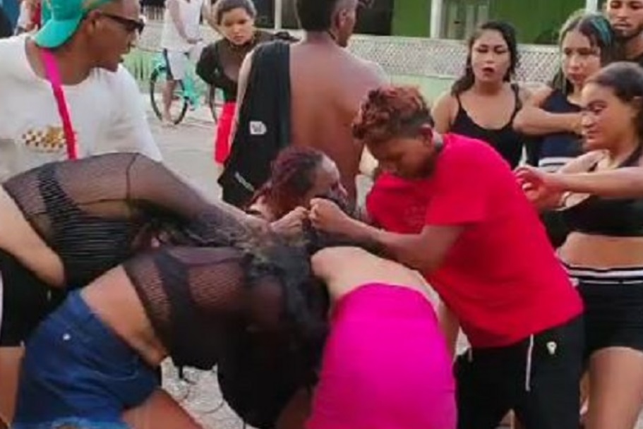 A mulher que apanha é apelidada de “jiquitaia”, e acaba ficando até sem roupa, enquanto o povo se diverte. Dizem que a briga era, mais uma vez, por causa de homem.