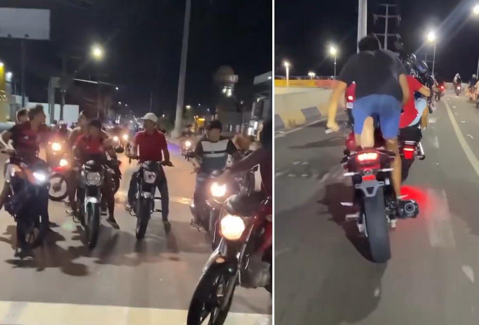 MANAUS – Um rolezinho em Manaus acabou com um motoqueiro e uma mulher cercados na garupa da moto. A cena impactante ocorreu na noite desta quinta-feira (9).