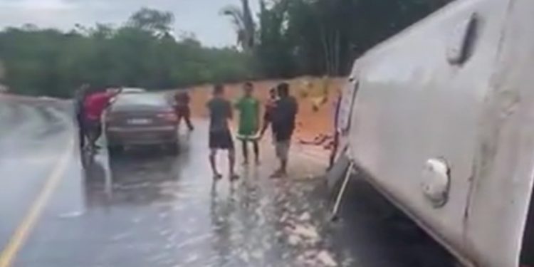 O acidente no ramal Bom Jesus teria sido causado por uma carreta que fecho o micro. Na tentativa de desviar, ele bateu no barranco e capotou.