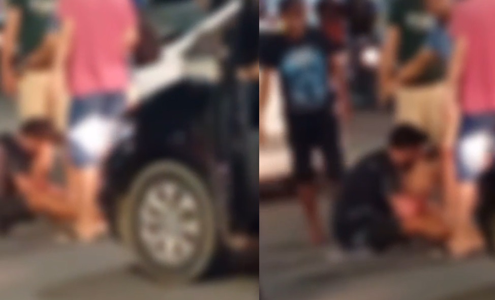 Logo em seguida um carro teria atropelado ele no meio da via. Muitas pessoas pararam e ajudaram o homem, mas não há noticia do estado de saúde dele e nem do motorista que o atropelou..