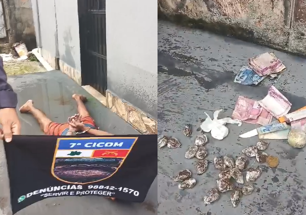 MANAUS (AM) – Um homem não identificado, suspeito de tráfico de drogas, foi preso na manhã desta quarta-feira (8) no beco São Lucas, no bairro São Lázaro, Zona Sul de Manaus. Com ele foi encontrada diversas trouxinhas de entorpecentes e dinheiro.
