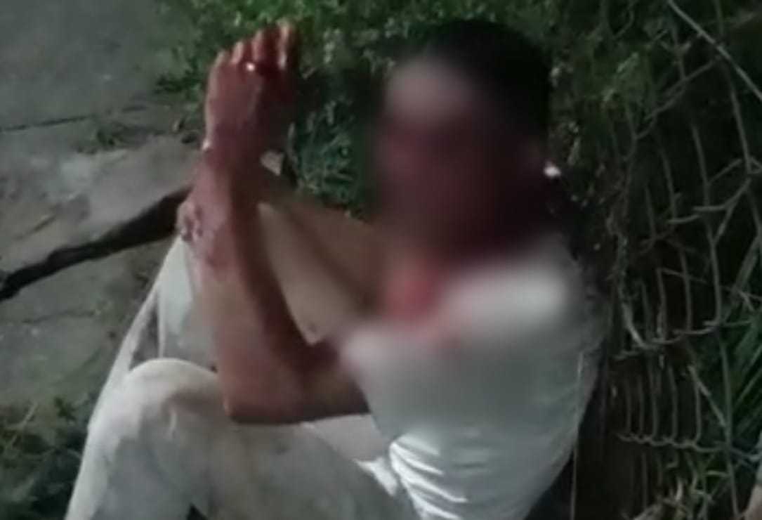 “Olha aí, tá roubando a casa do Senhor. Roubou a igreja”, disse a pessoa que o filma, explicando o motivo da agressão.