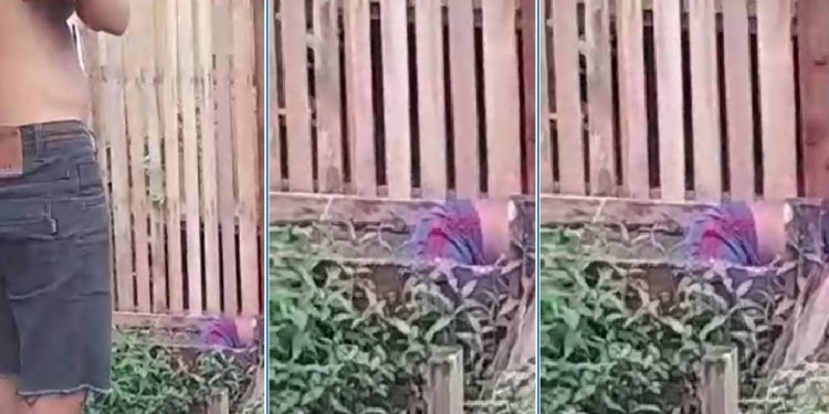 Imagens mostram ele quase apagado no quintal após ser punido por traficantes da cidade. Depois da surra os bandidos fugiram do local e não foram identificados.