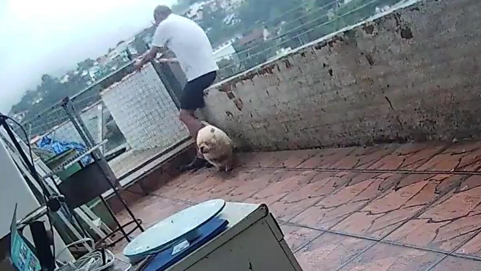 RIO DE JANEIRO (RJ) – Uma cena inusitada e preocupante viralizou nas redes sociais nesta semana, mostrando um homem caindo de uma laje após ser atropelado acidentalmente pelo próprio cachorro. O incidente ocorreu na cobertura de uma residência no Rio de Janeiro.