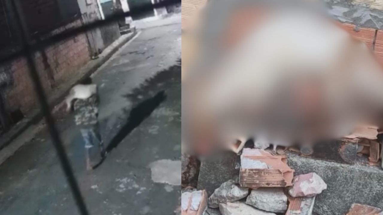 De acordo com informações, o autor seria um morador de rua e nas imagens registradas por câmeras de segurança, ele deixa o corpo do animal, durante a noite, na frente de uma residência e foge em seguida.