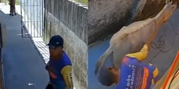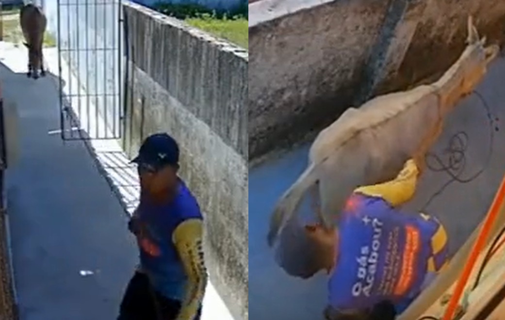 O caso teria ocorrido na última terça-feira (10). Uma câmera de segurança filmou a cena deplorável. O caso é considerado maus tratos a animais. A cena é bem clara.