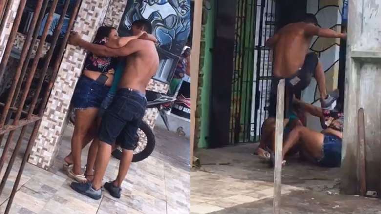 BELÉM (PA) – Em vídeo que circula nas redes sociais um homem estaria agredindo supostamente a própria esposa e ainda a sogra, no meio da rua, no bairro da Terra Firme, em Belém, no Pará. O fato teria acontecido na tarde deste domingo (9).