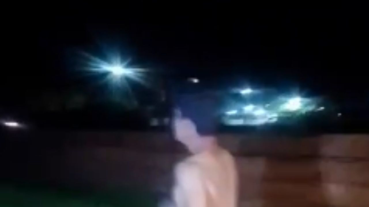 Vídeos que circulam nas redes sociais mostram o homem correndo enquanto os populares gritam, incluindo: “Pra parar de ser vagabundo”.