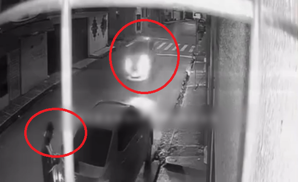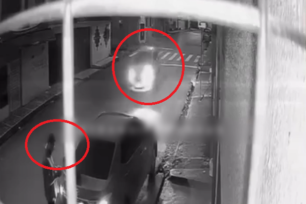 O homem estava parado próximo a um carro estacionado quando outro veículo, em alta velocidade, colidiu violentamente contra o automóvel parado. Com o impacto, o carro em movimento projetou-se no ar e passou por cima do pedestre sem atingi-lo diretamente.
