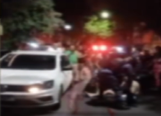 Um vídeo divulgado nas redes sociais mostra o homem já no chão com um rastro de sangue. A Polícia Militar já estava na área, mas ninguém foi preso.