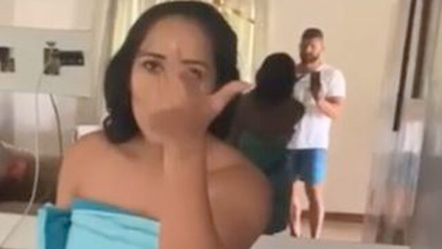 Nas imagens, o marido furioso grava a mulher enrolada no lençol, após o sexo. Segundo informações, ela estava fazendo o ato sexual na sala de casa, e foi surpreendido com a chegada do marido.