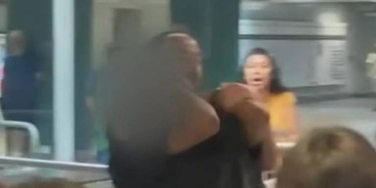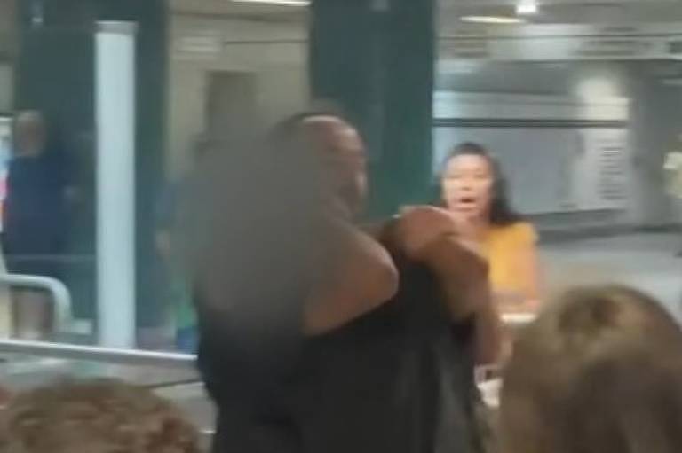 Em outro ponto, um outro segurança também aplica um golpe de estrangulamento em outro homem do lado de fora das catracas, embora este consiga se libertar.