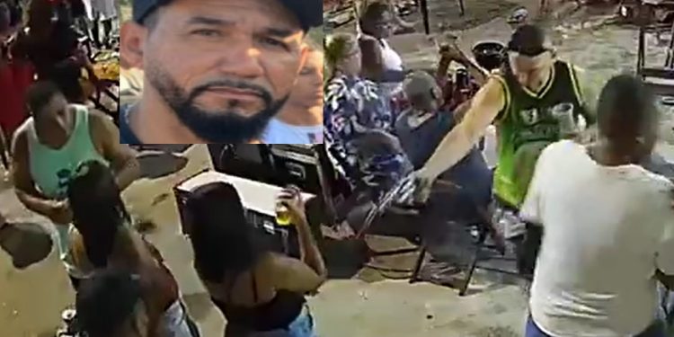 O homem mata Jorge com um copo de cerveja na mão. A câmera de segurança filma toda a cena, mas até agora não há notícia da prisão dele.