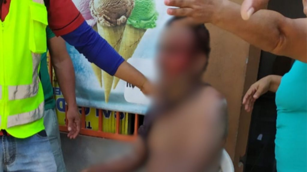 Um vídeo registrado por moradores mostra o homem recebendo os primeiros socorros.